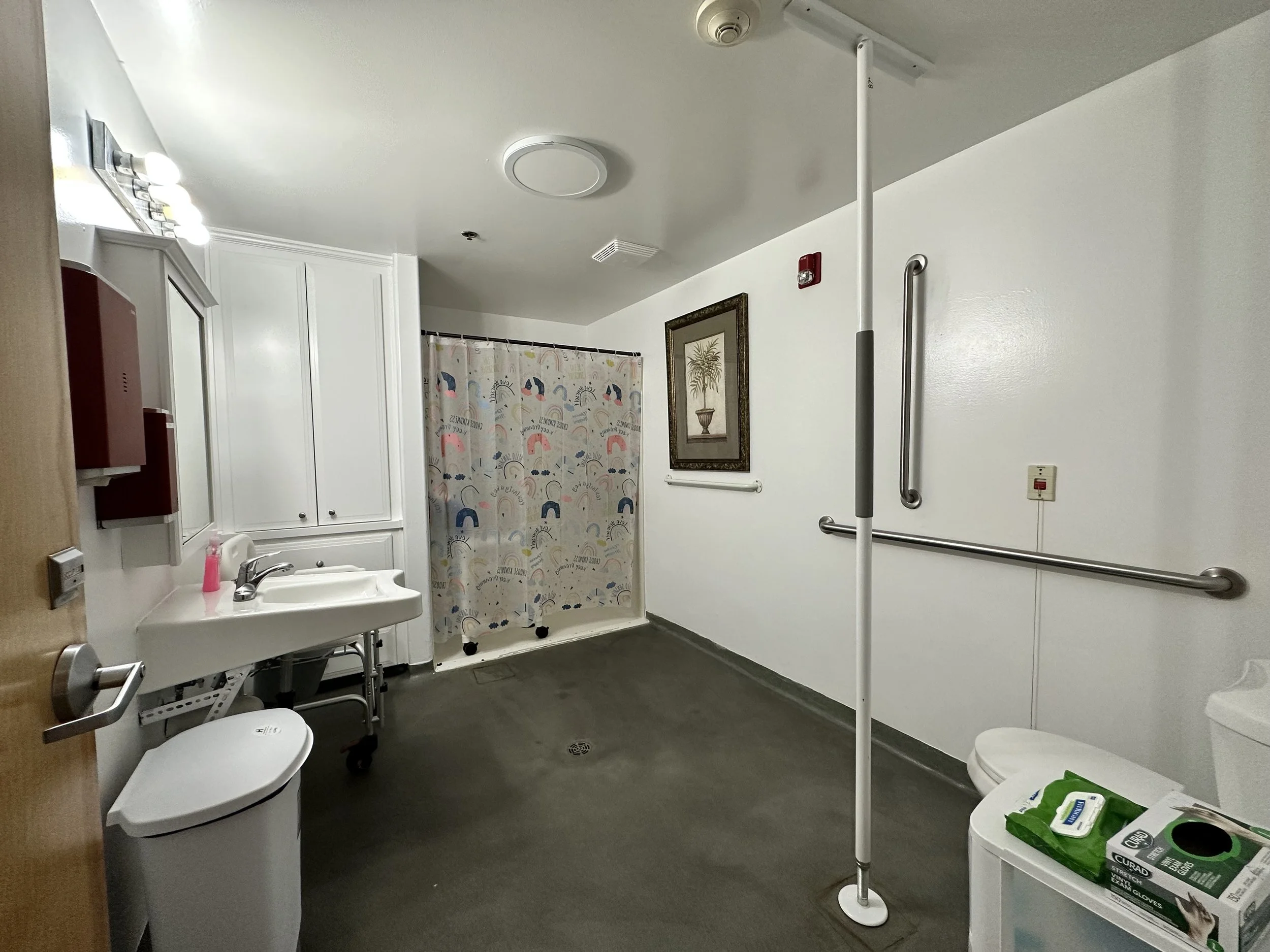 Our facility has 4 private rooms that contain a full bath, which includes a sink, toilet, shower, and bathtub. We also have 5 semi-private rooms that contain a half bath, which includes only a sink and toilet. Lastly, we have 12 single/individual rooms that have no bath, and instead share a communal bathroom, which includes a sink, toilet, and shower.